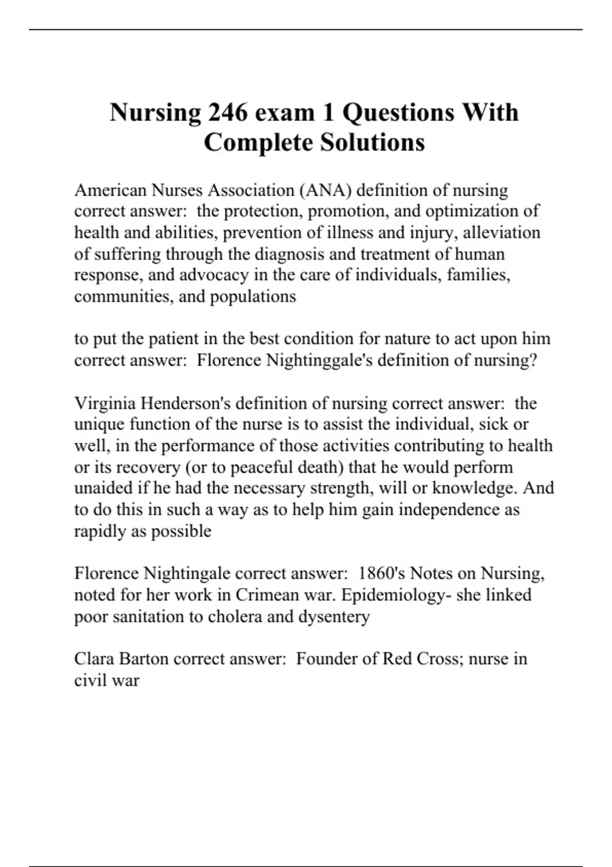 Nursing 246 exam 1 Questions With Complete Solutions.