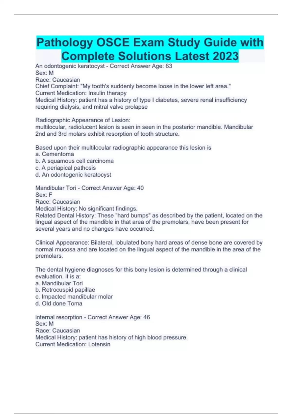 The dental hygiene diagnoses for this bony lesion is determined through a clinical evaluation. it is a: