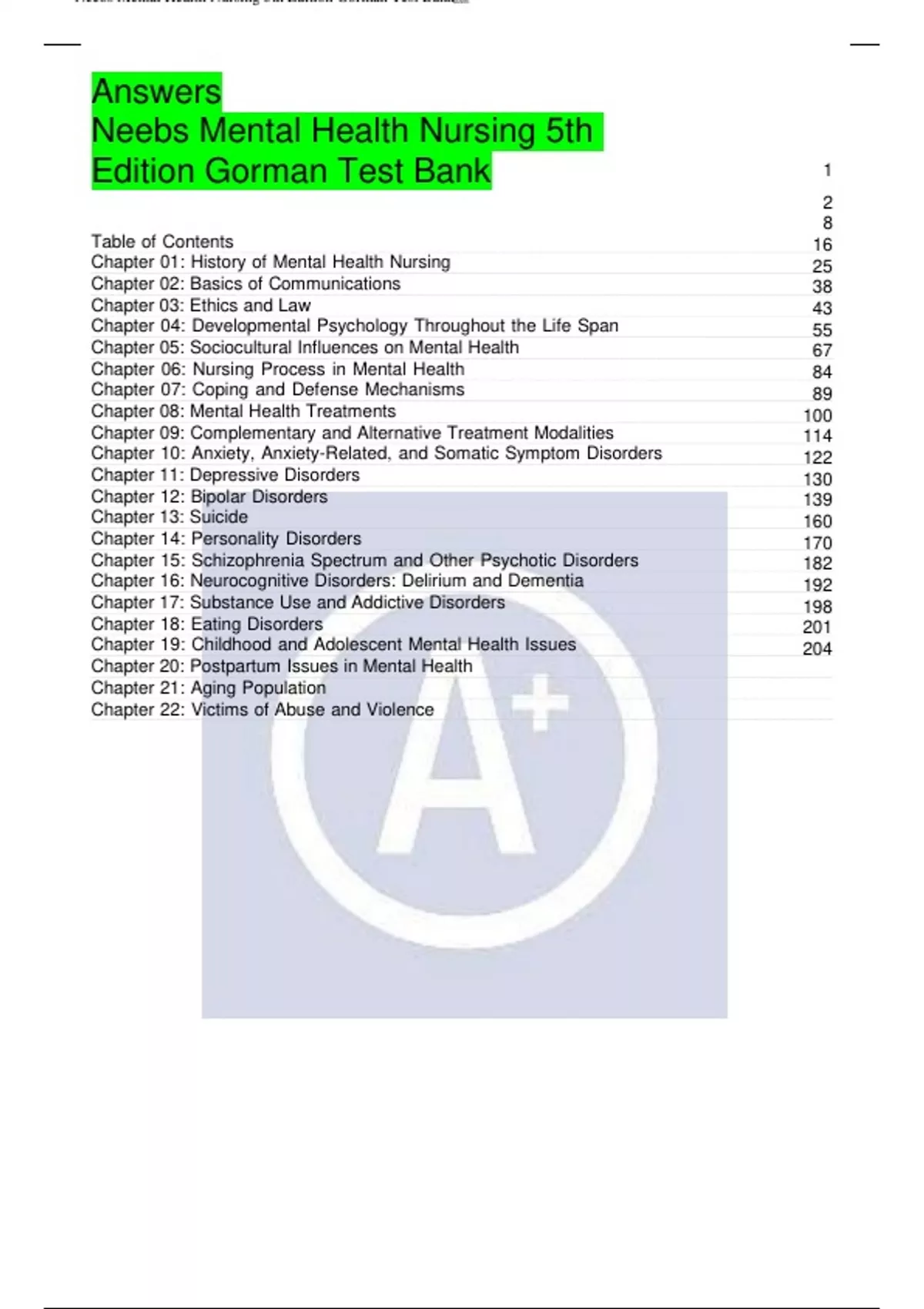 Answers Neebs Mental Health Nursing 5th Edition Gorman Test Bank