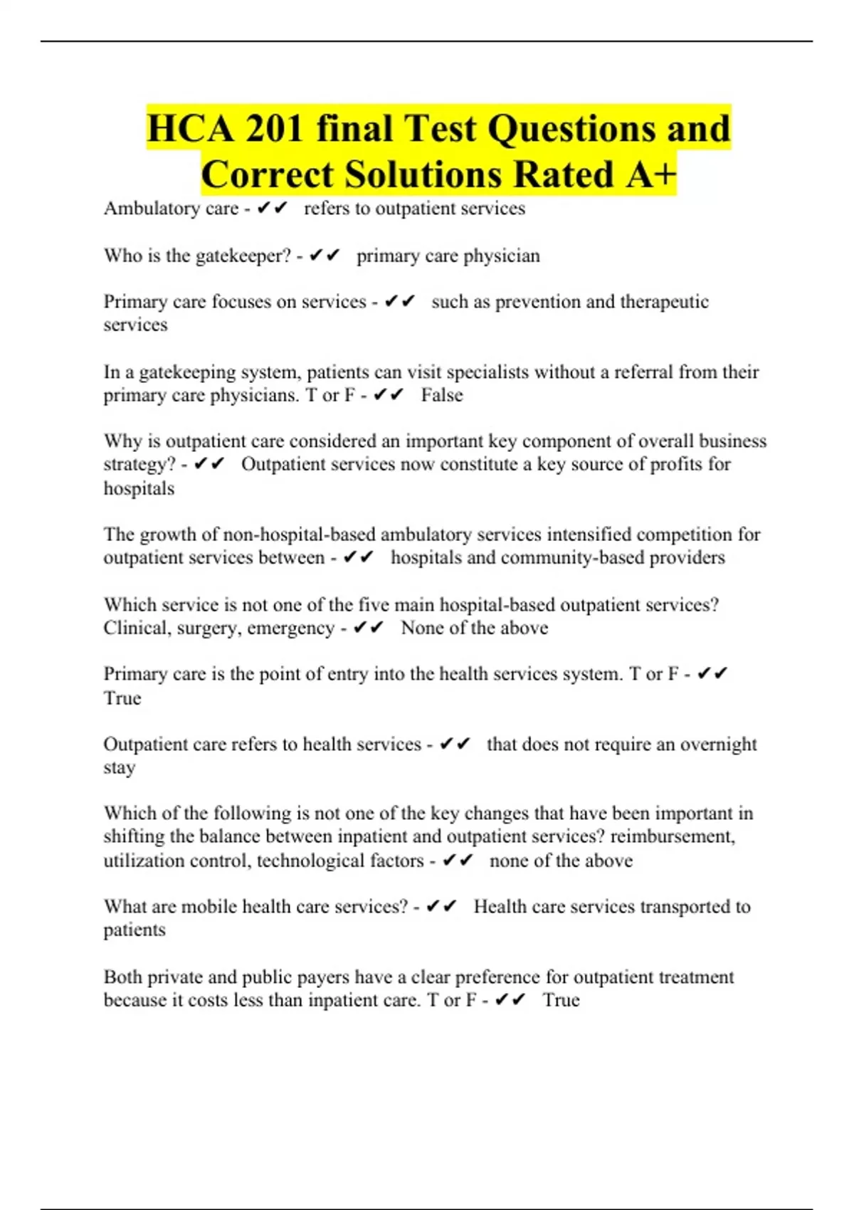 HCA 201 final Test Questions and Correct Solutions Rated A+