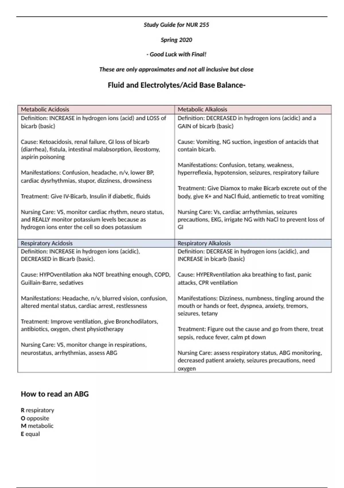 Study Guide Final NUR 255 Spring 2024 Allie version