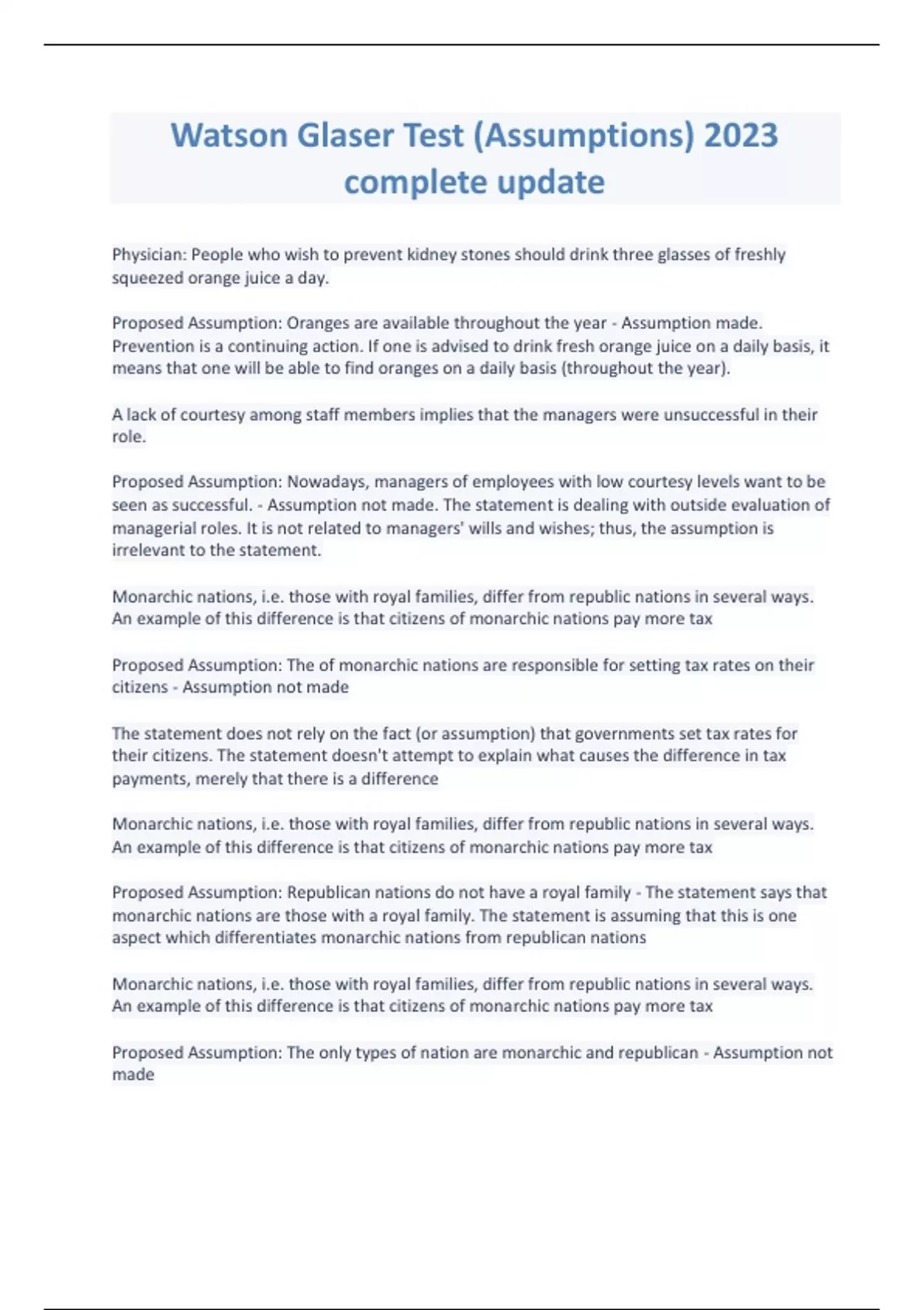 COMBINED |Watson Glaser Test EXAMS 100% | EXPECTED SOLUTIONS QUESTIONS AND CORRECT ANSWERS