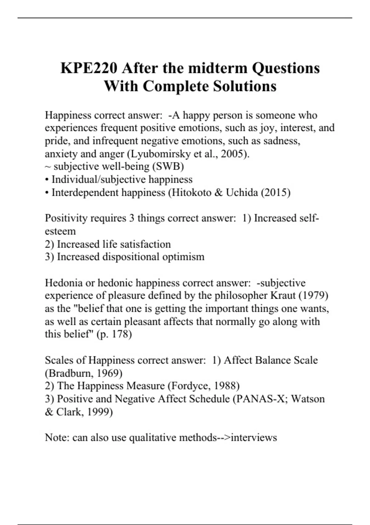 Scales of Happiness correct answer: 1) Affect Balance Scale