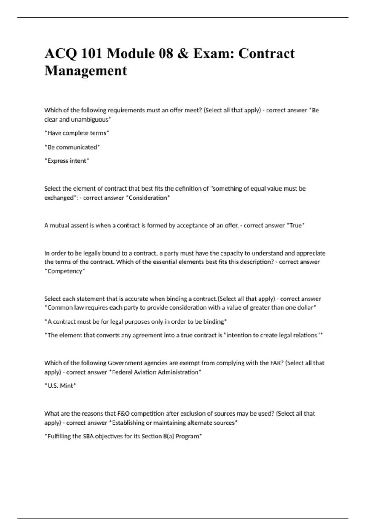 ACQ 101 Module 08 & Exam Contract Management fully solved 2023