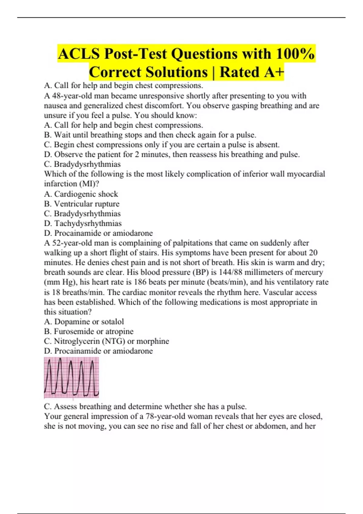 ACLS Post-Test Questions with 100% Correct Solutions | Rated A+