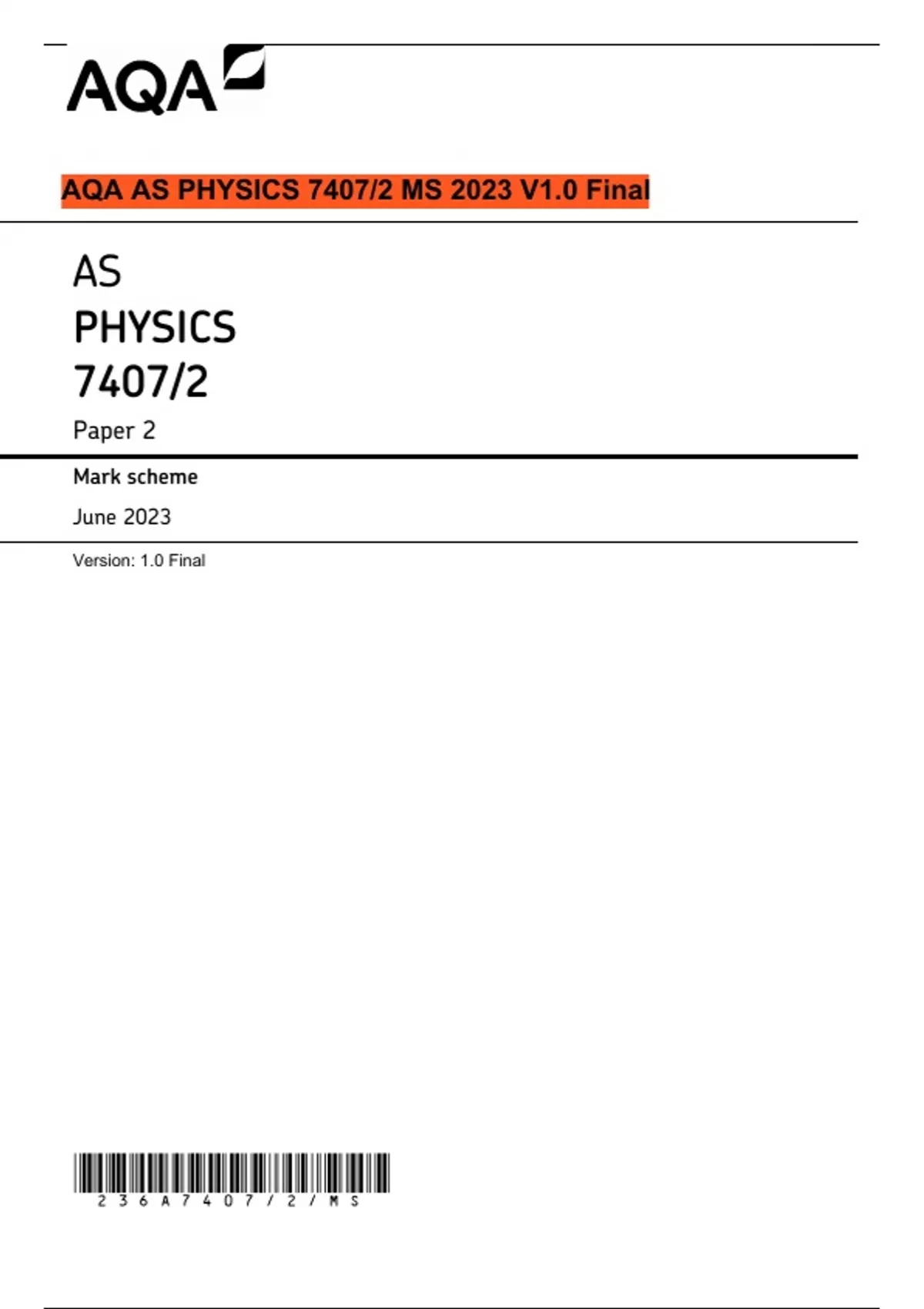 AQA AS PHYSICS 7407/2 MS 2023 V1.0 Final