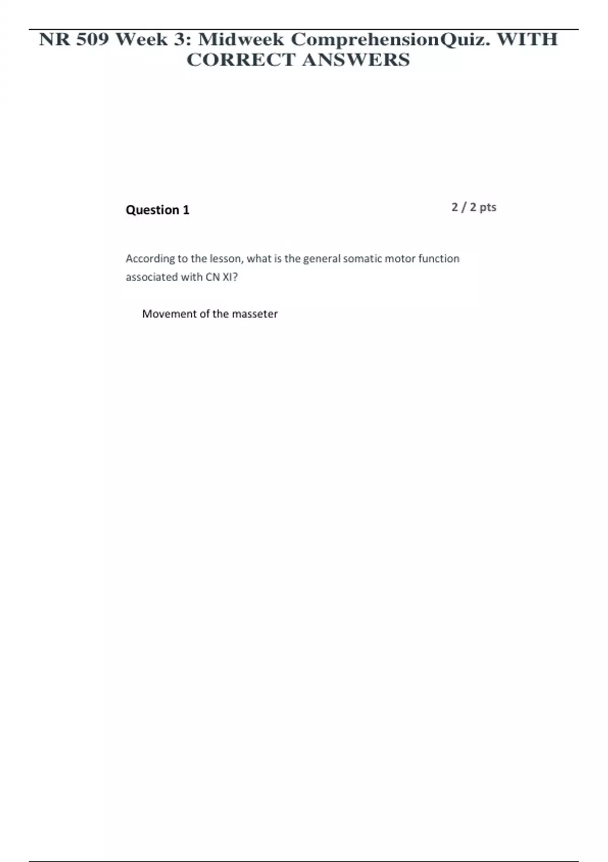 NR 509 Week 3: Midweek Comprehension Quiz. WITH CORRECT ANSWERS