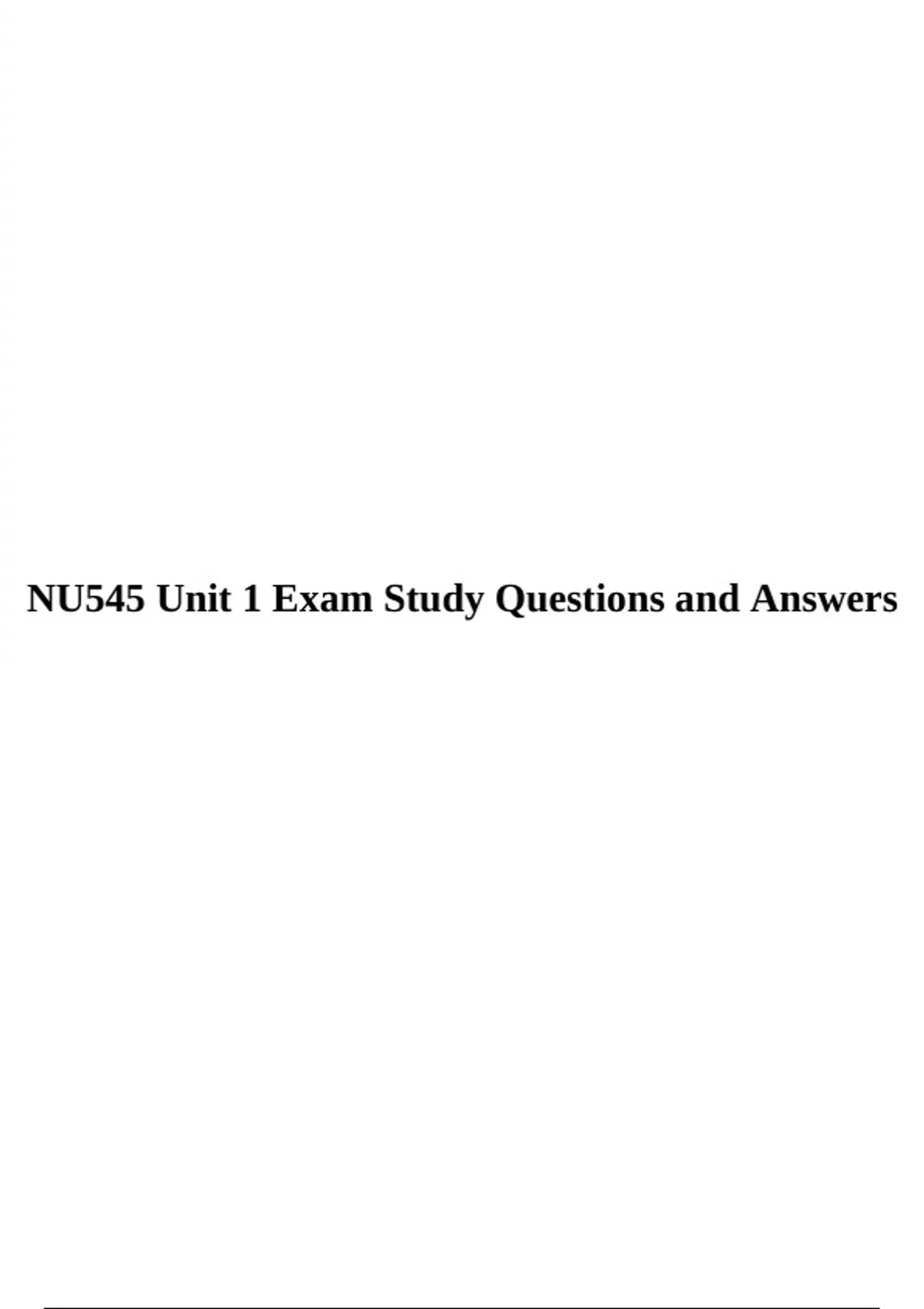 NU545 Unit 1 Exam Study Questions and Answers.