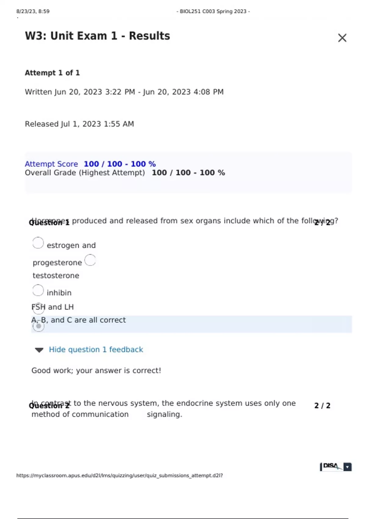 BIOL251 Week 3 Unit Exam 1 (All Correct)
