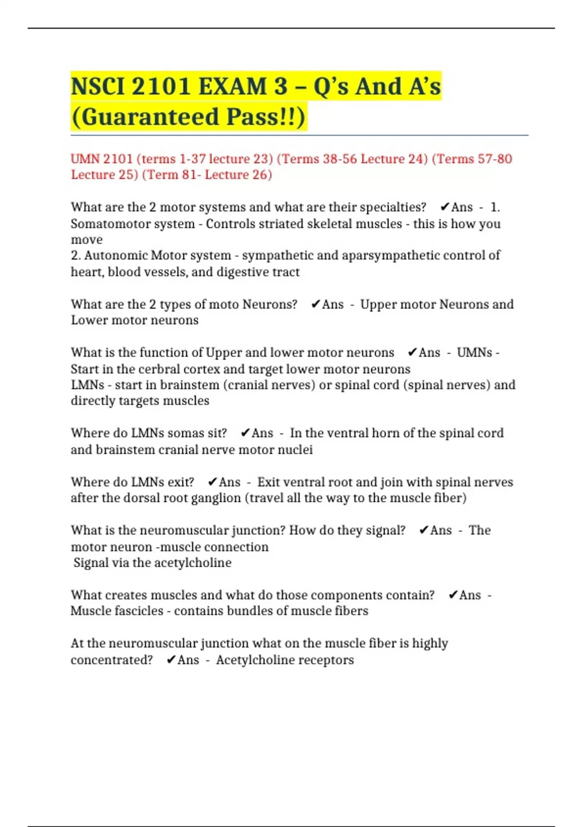 NSCI 2101 EXAM 3 – Q’s And A’s (Guaranteed Pass!!)