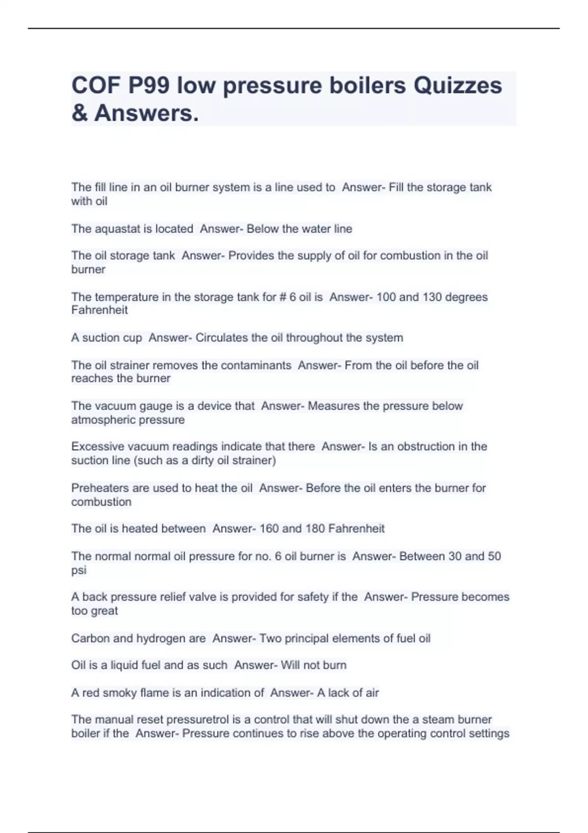 COF P99 low pressure boilers Quizzes & Answers.