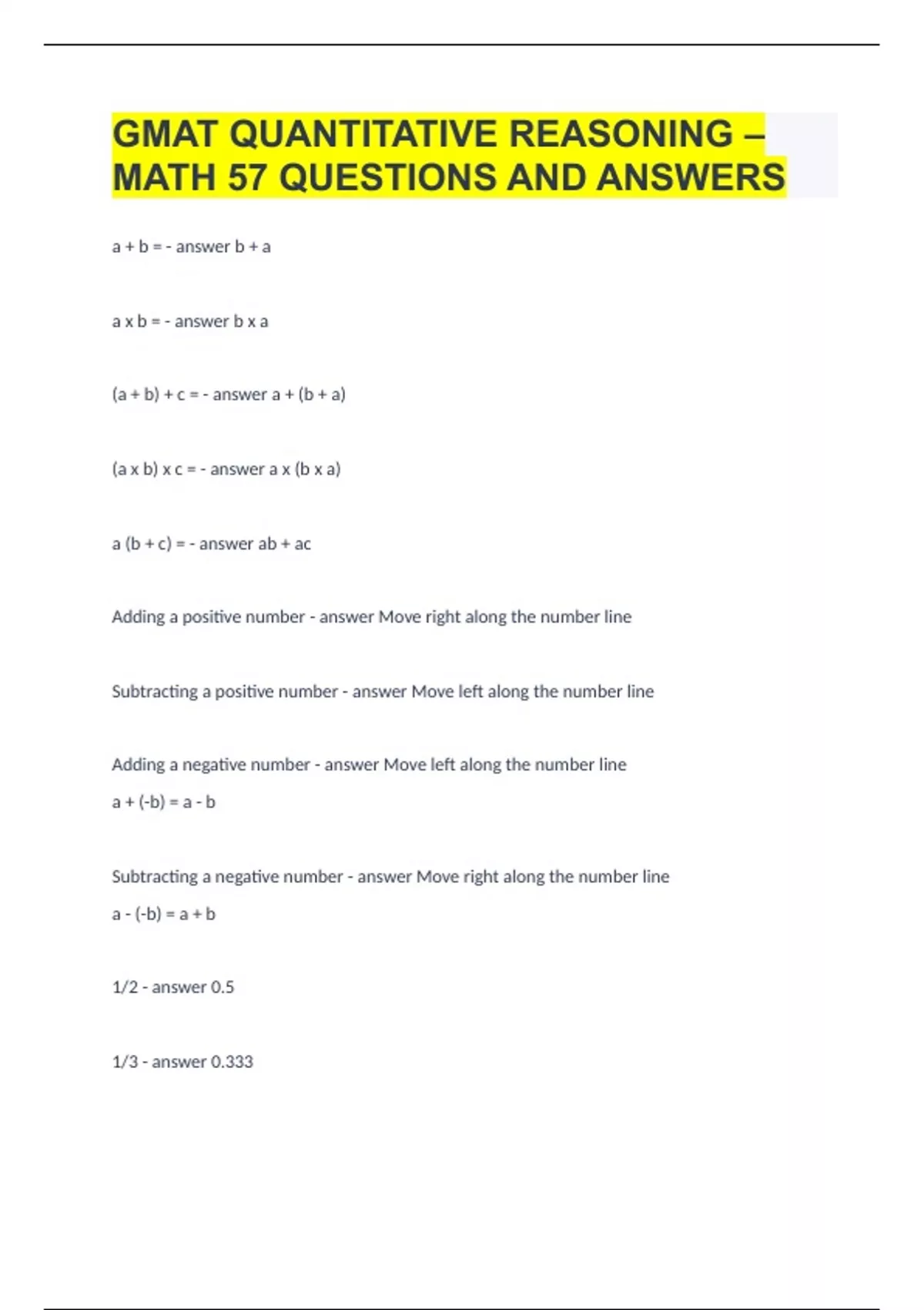 GMAT QUANTITATIVE REASONING – MATH| 57 QUESTIONS AND ANSWERS