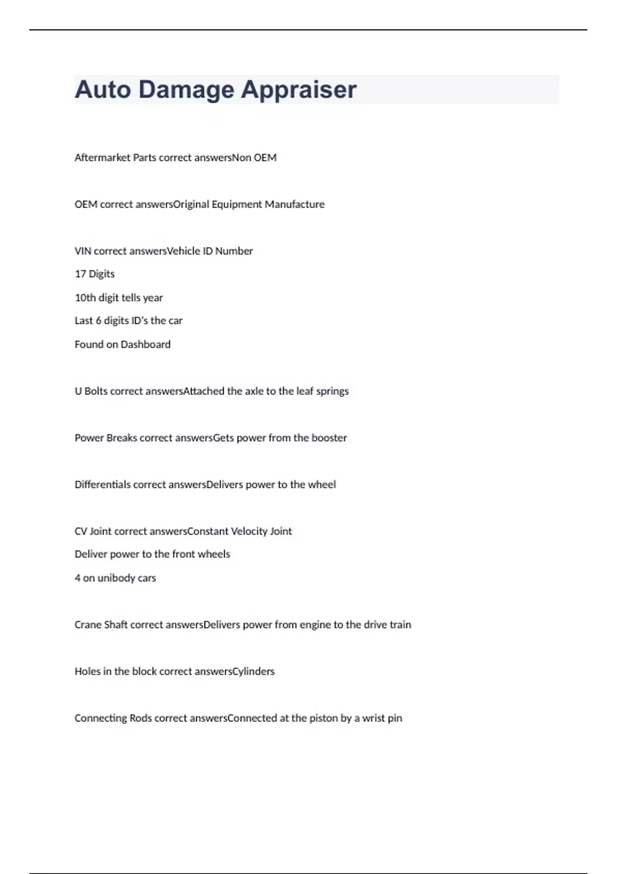VIN correct answersVehicle ID Number