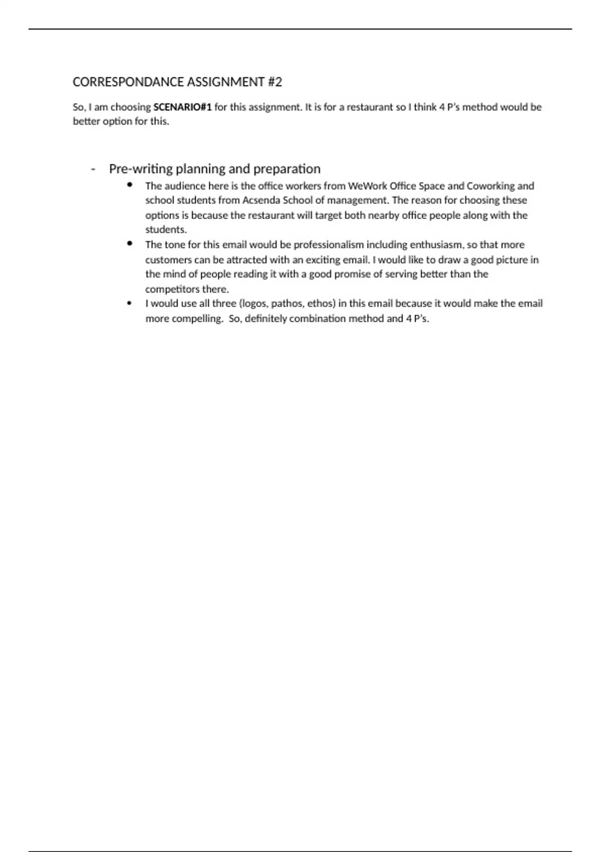 So, I am choosing SCENARIO#1 for this assignment. It is for a restaurant so I think 4 P’s method would be