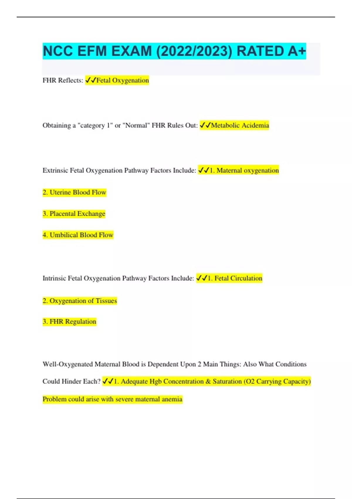NCC Electronic Fetal Monitoring Bundled Exams Together with complete solutions Questions and Answers Graded A+, Latest Update (Verified Answers) (Full Solution Pack)