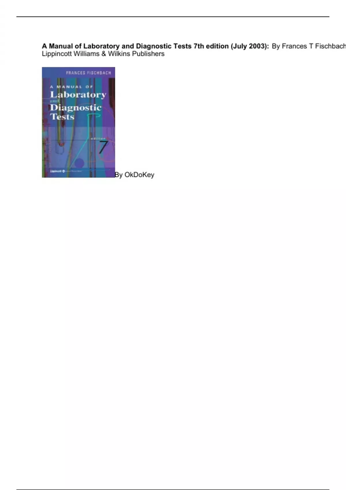 A Manual of Laboratory and Diagnostic Tests 7th edition (July 2003): By Frances T Fischbach RN, BSN, MSN By Lippincott Williams & Wilkins Publishers