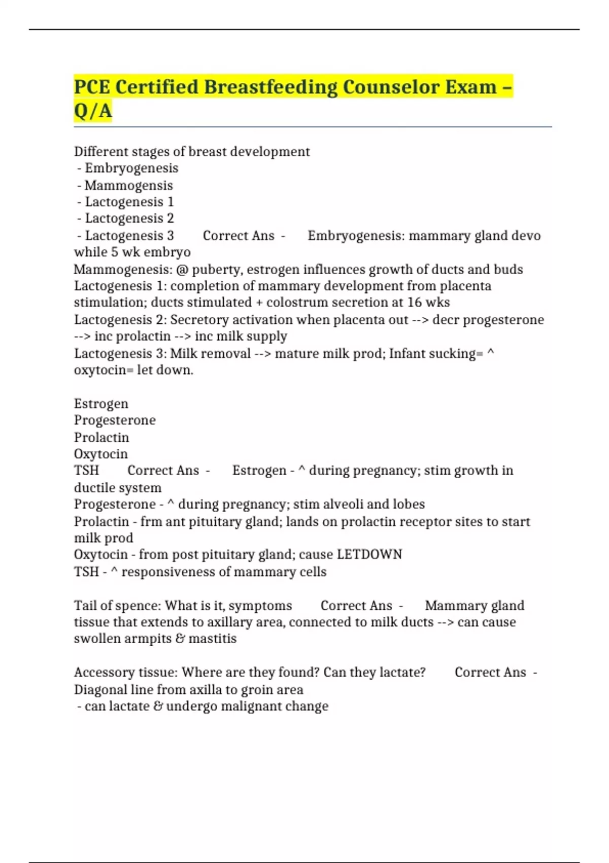 PCE Certified Breastfeeding Counselor Exam – Q/A