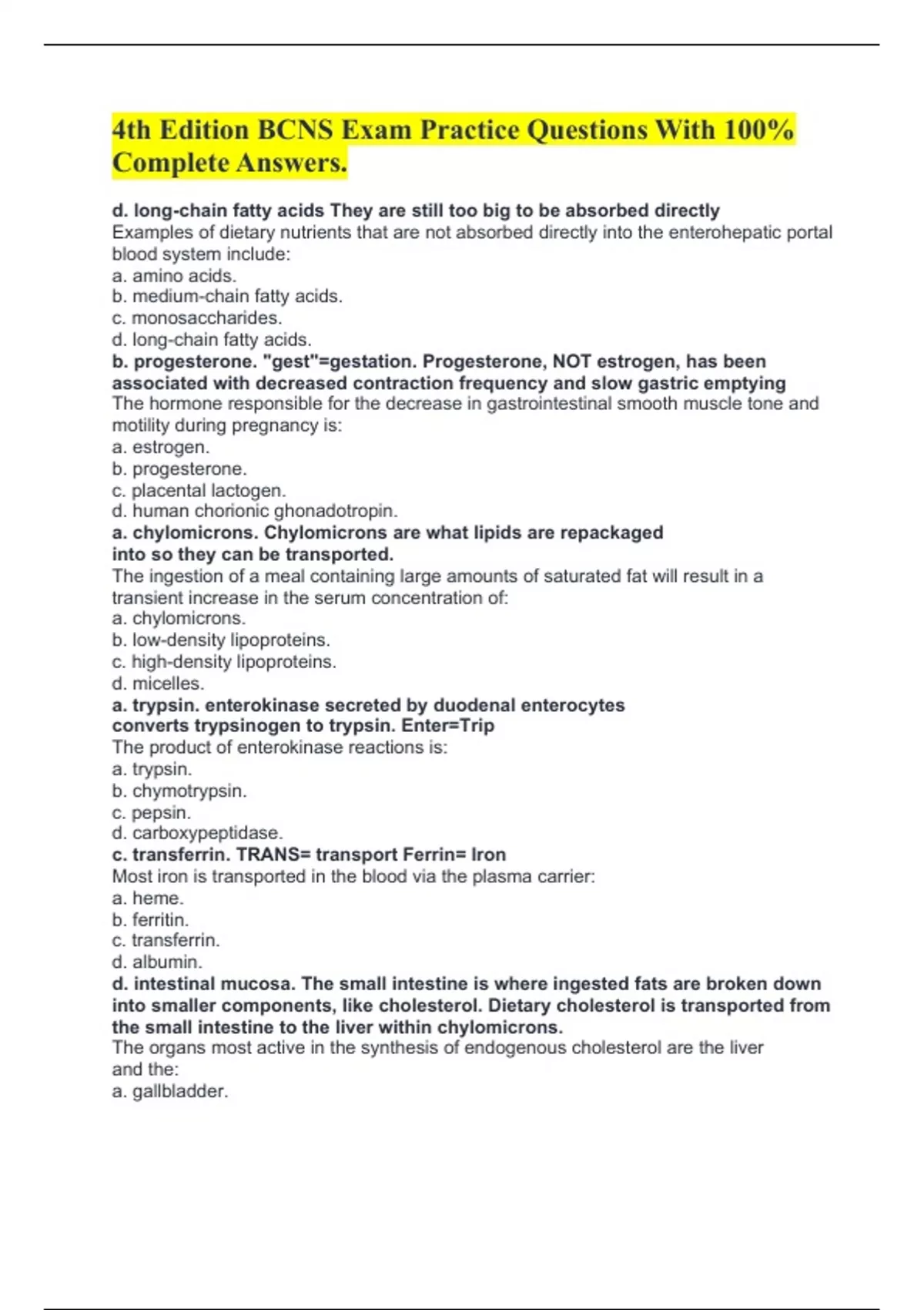 into smaller components, like cholesterol. Dietary cholesterol is transported from