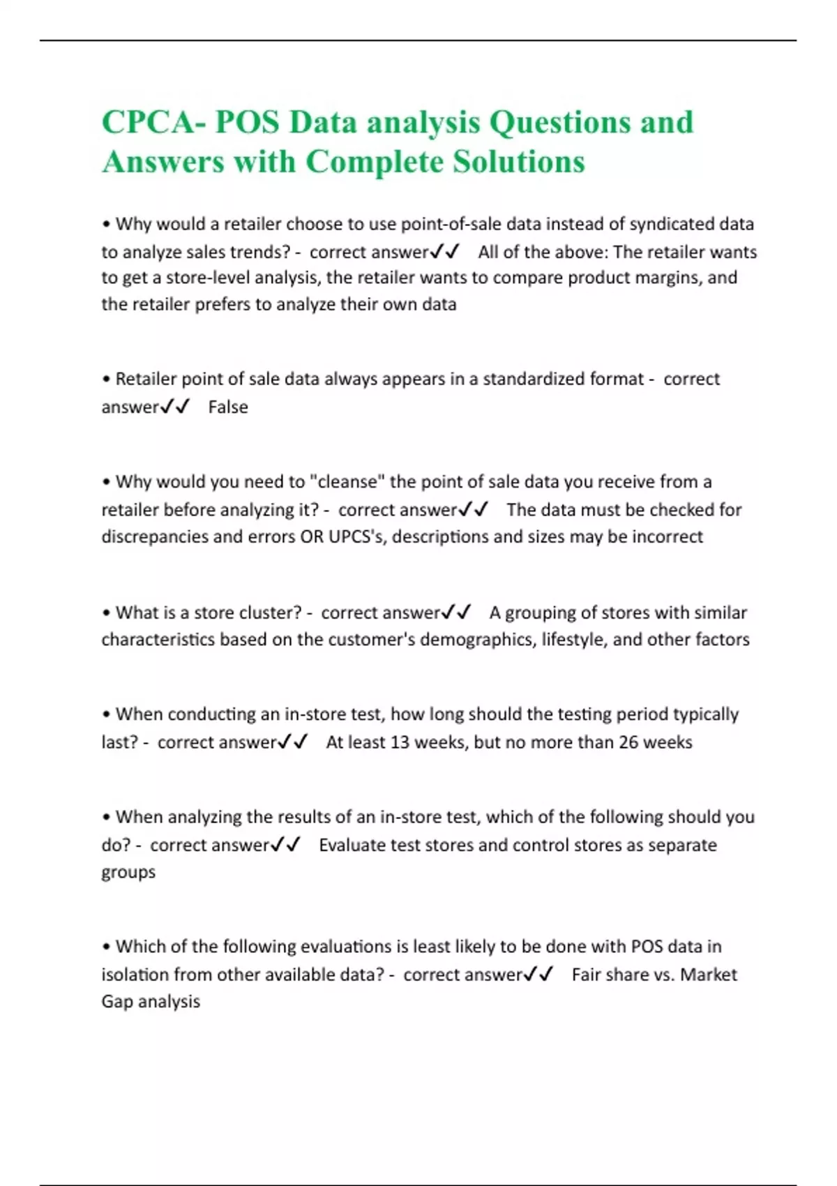 CPCA- POS Data analysis Questions and Answers with Complete Solutions