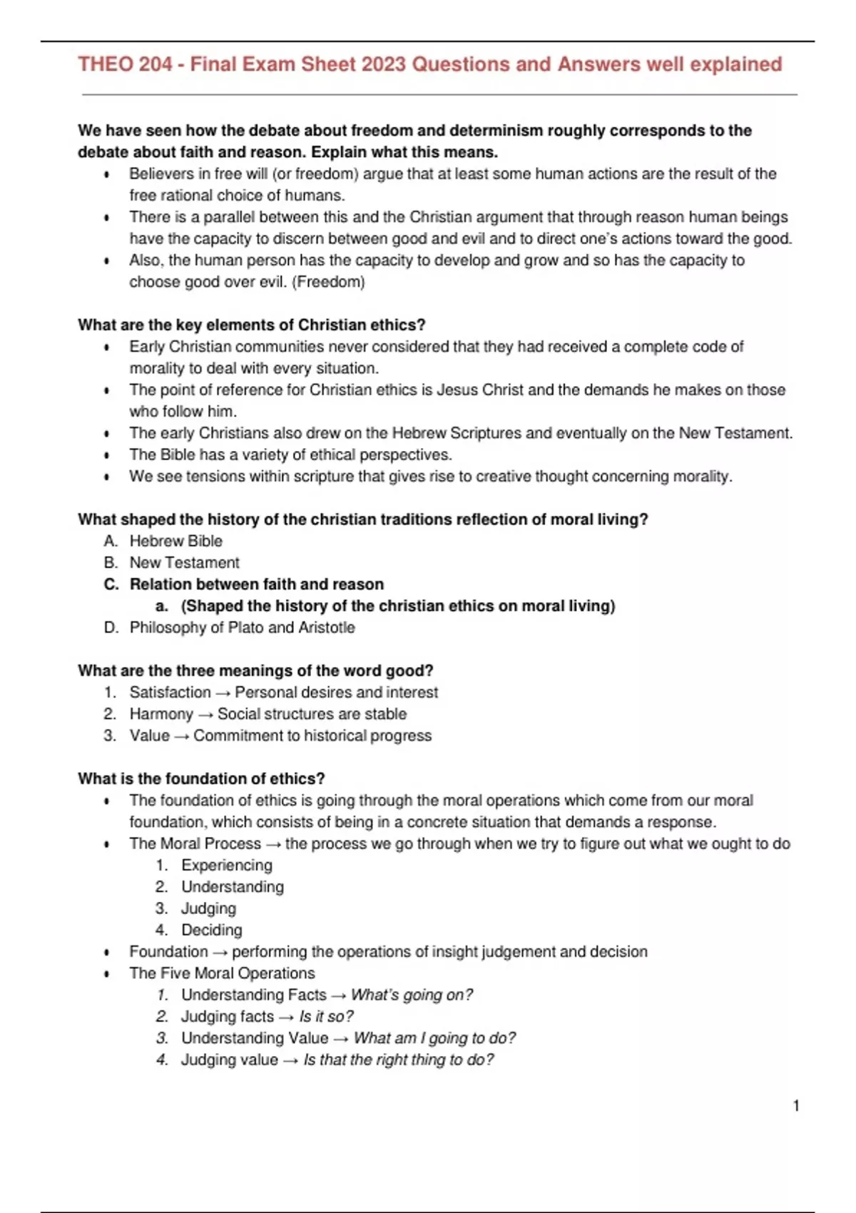 THEO 204 - Final Exam Sheet 2023 Questions and Answers well explained