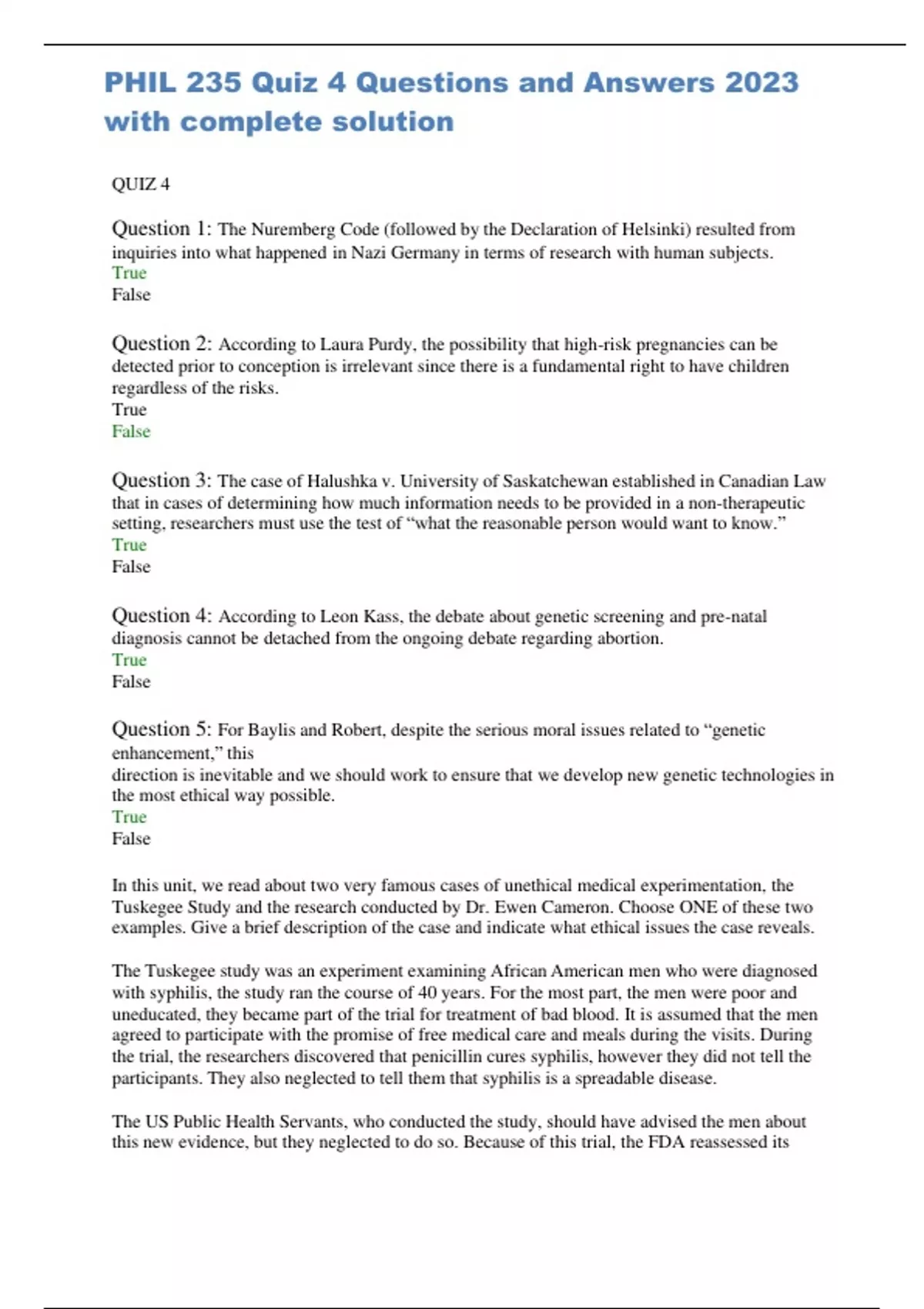 PHIL 235 Quiz 4 Questions and Answers 2023