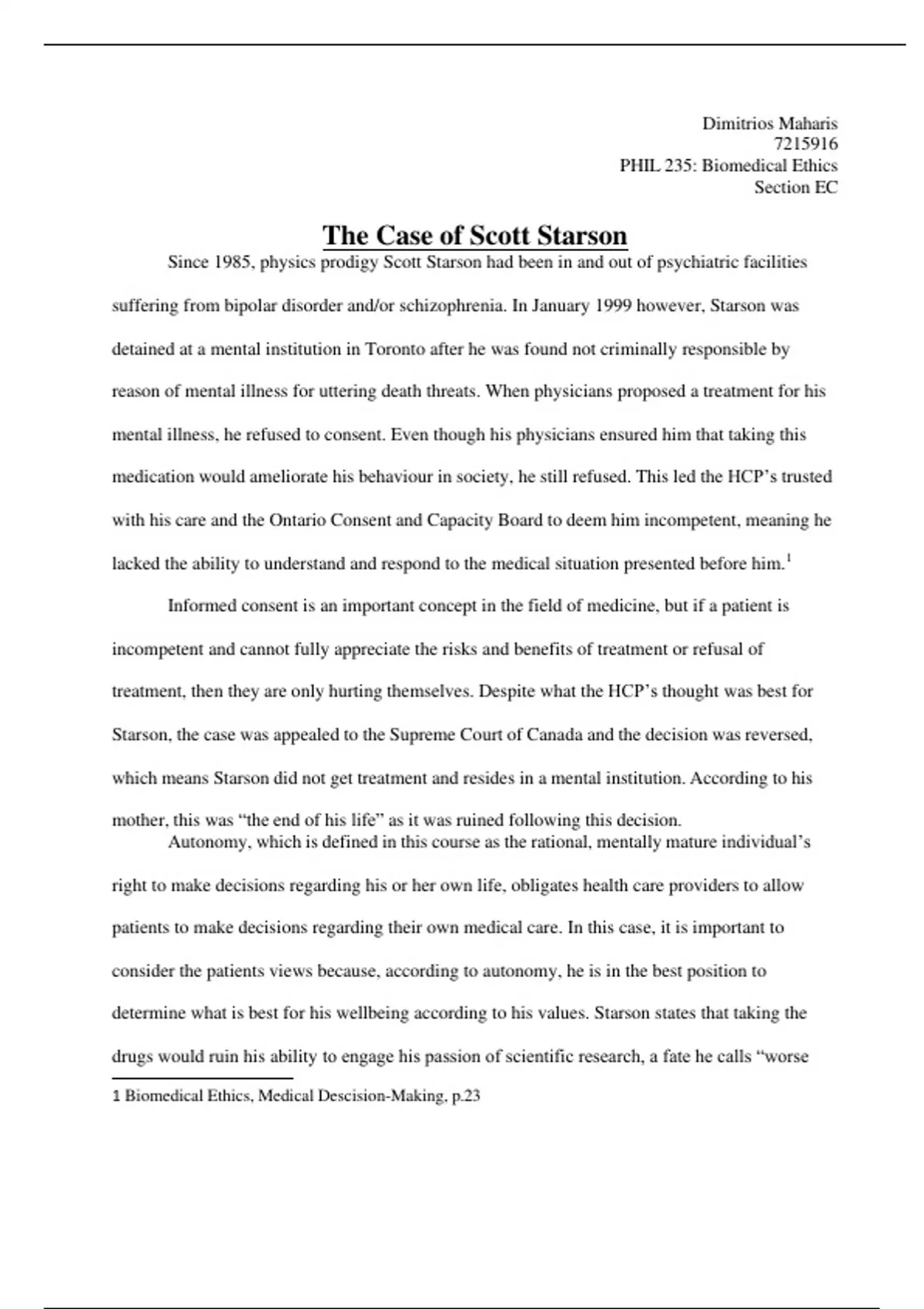 PHIL 235 Case study Dimitrios Maharis with complete solution:(The Case of Scott Starson)