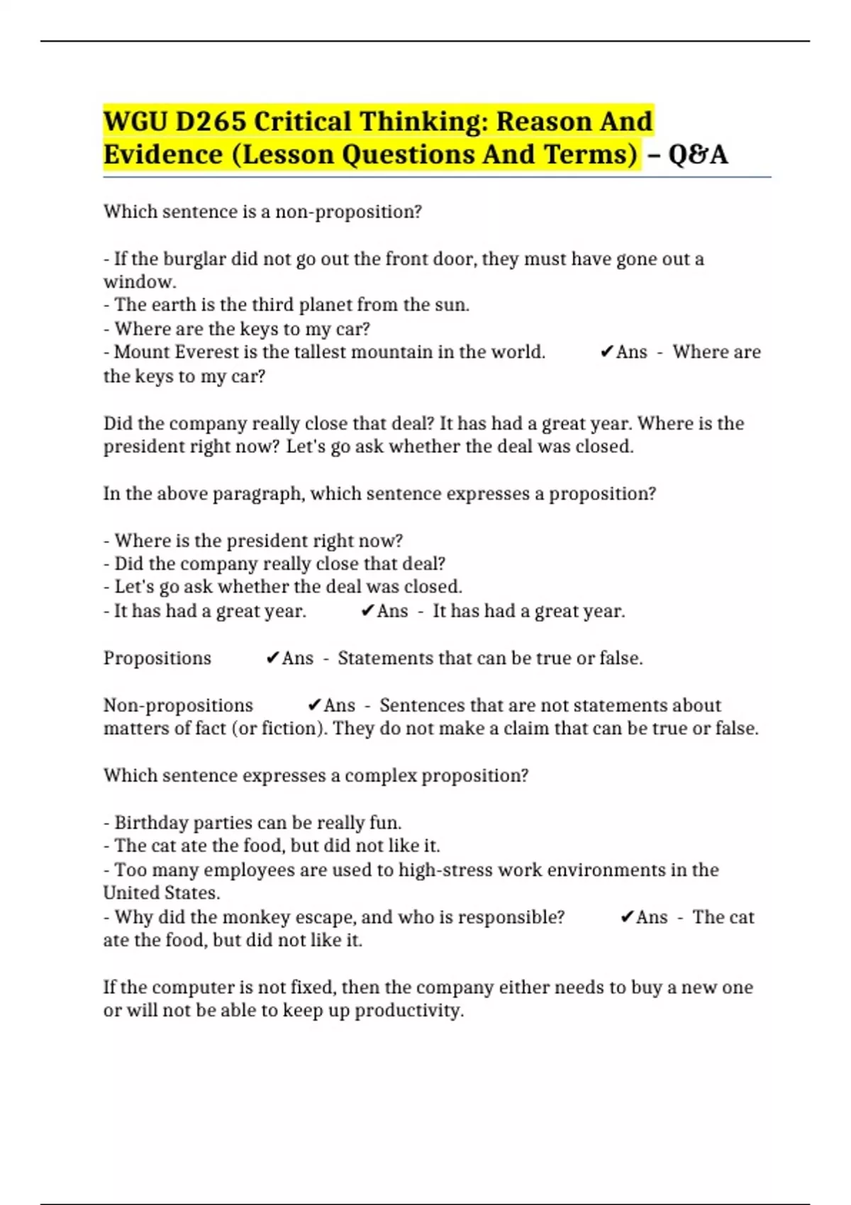 Non-propositions ✔️Ans - Sentences that are not statements about