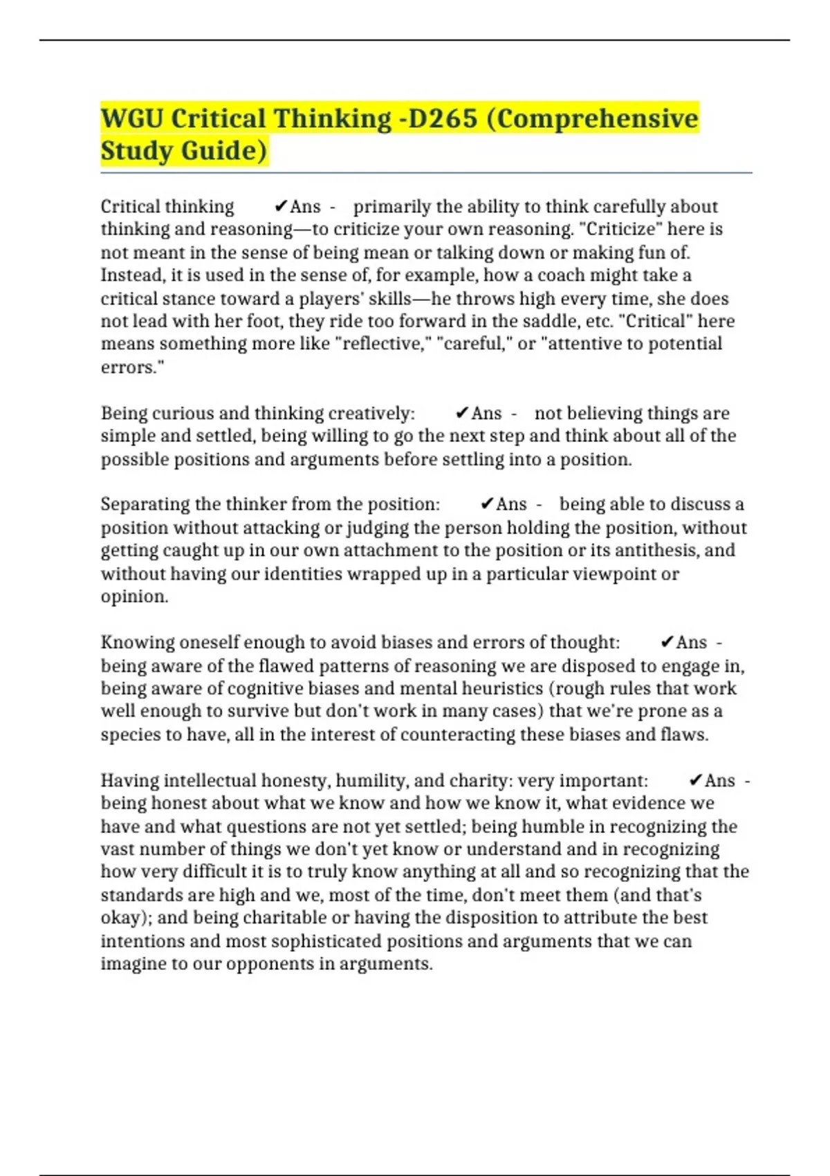 WGU Critical Thinking -D265 (Comprehensive Study Guide)