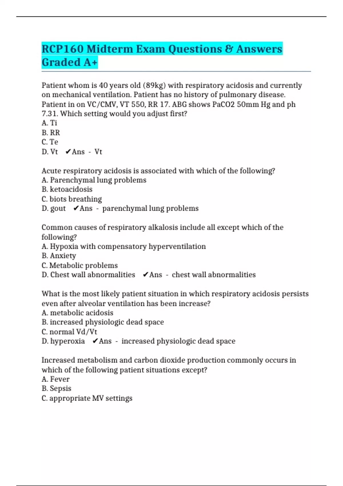 rcp160 midterm exam questions answers graded a