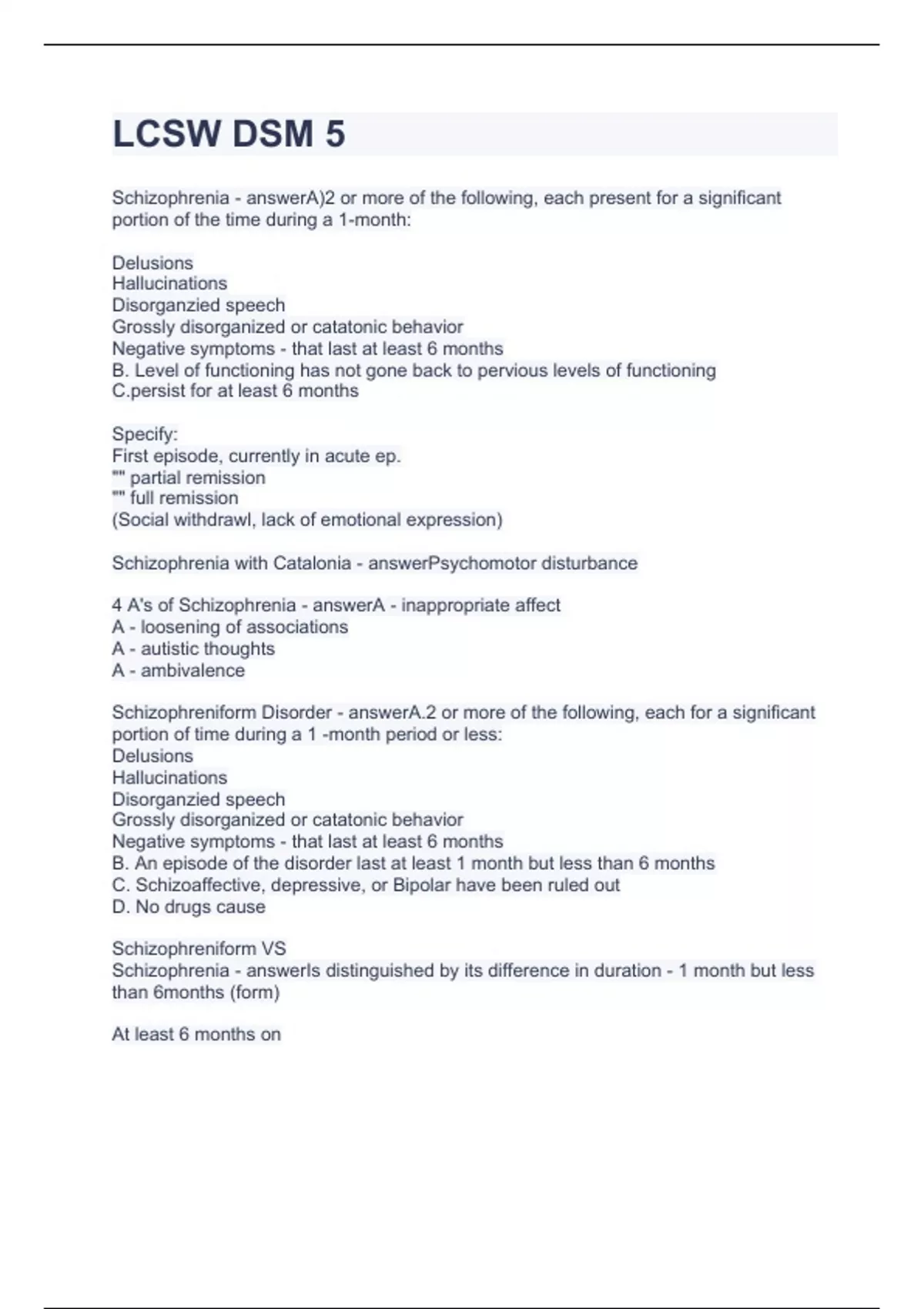 LCSW DSM 5.TESTS WITH ACCURATE ANSWERS