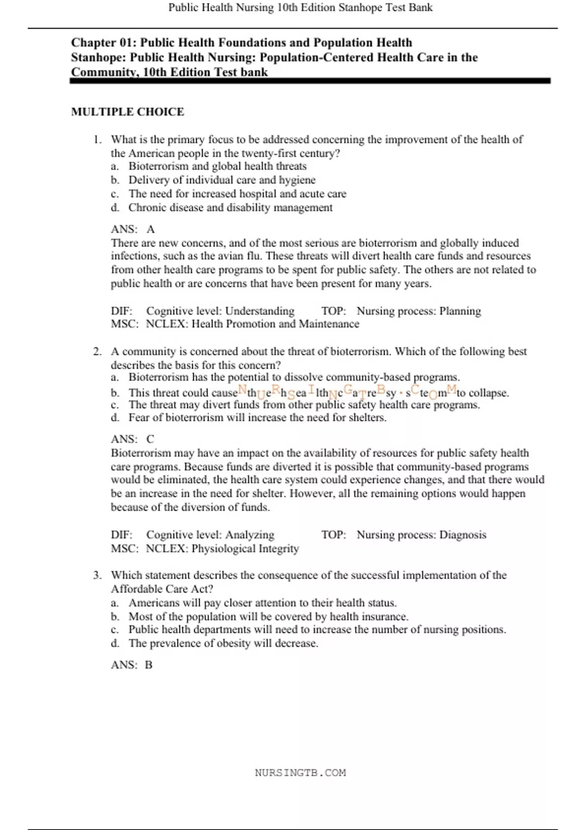 Public Health Foundations and Population Health Stanhope: Public Health Nursing: Population-Centered Health Care in the Community, 10th Edition Test bank
