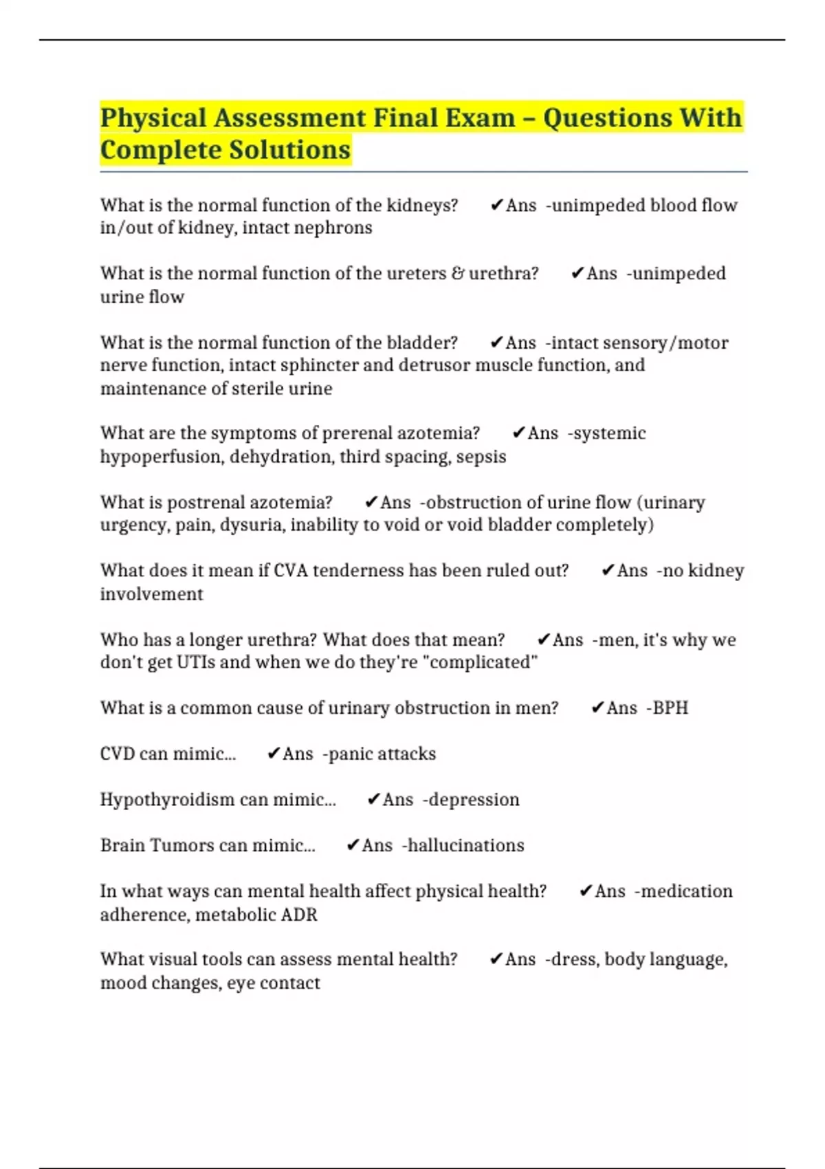 What is postrenal azotemia? ✔️Ans -obstruction of urine flow (urinary
