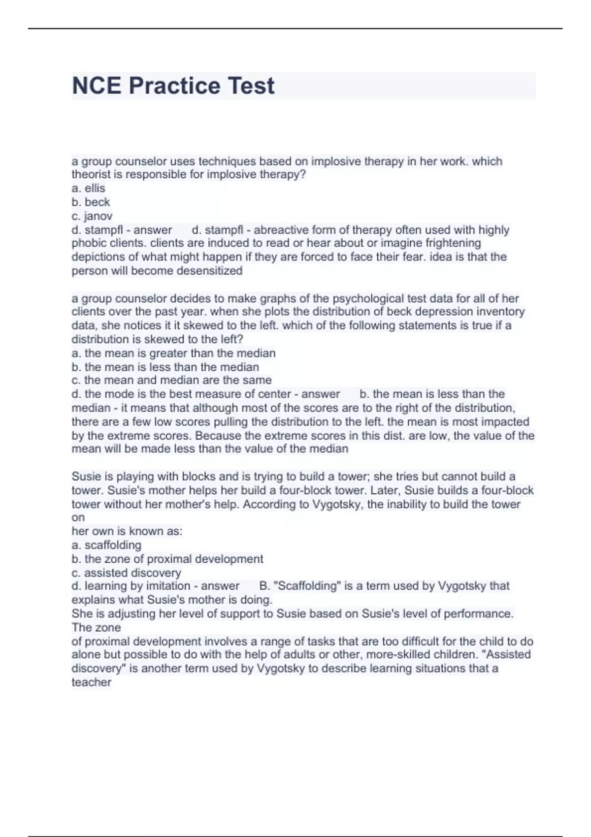 NCE Practice Test Questions and Answers 2023