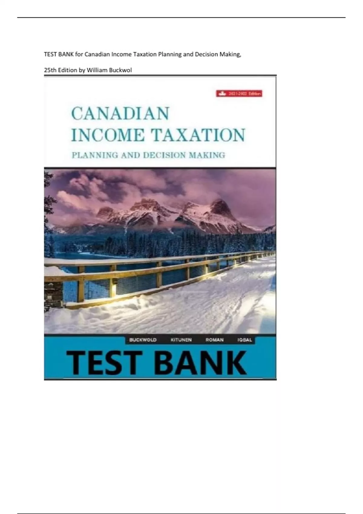 TEST BANK for Canadian Income Taxation Planning and Decision Making 25th edition by William