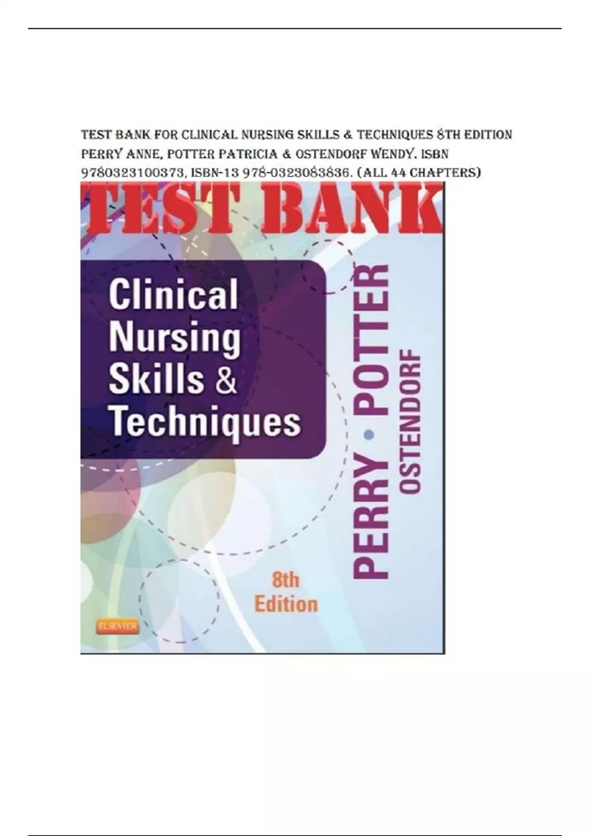 TEST BANK for Clinical Nursing Skills & Techniques 8th Edition Perry Anne, Potter Patricia & Ostendorf
