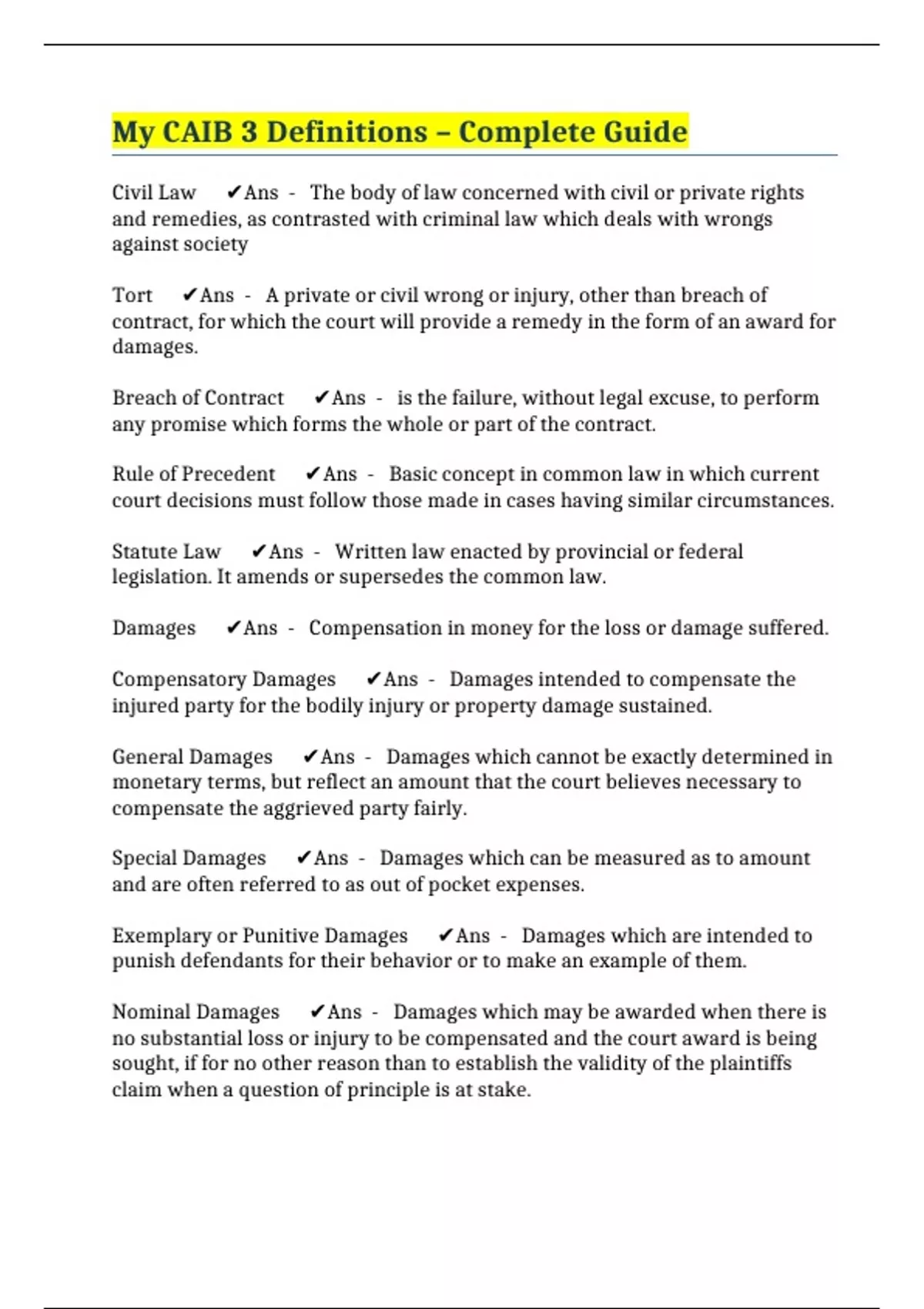General Damages ✔️Ans - Damages which cannot be exactly determined in