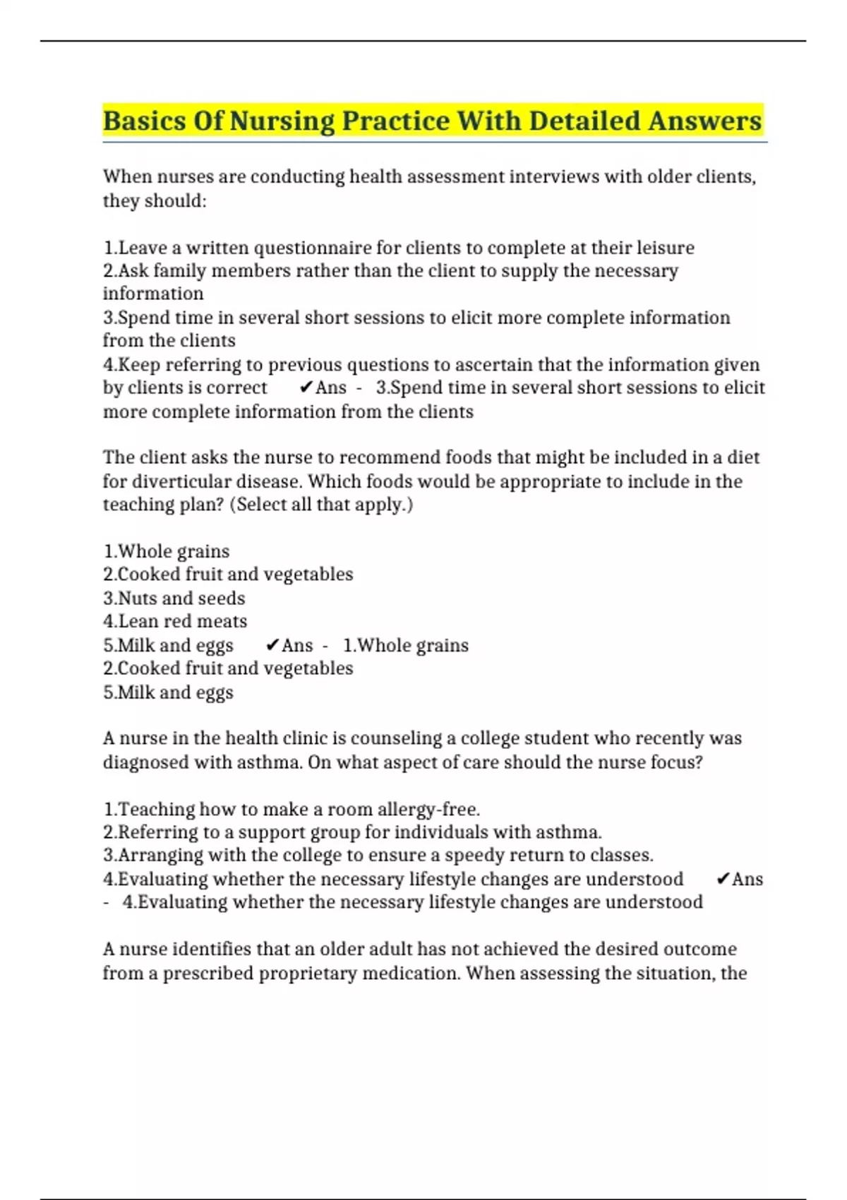Basics Of Nursing Practice With Detailed Answers