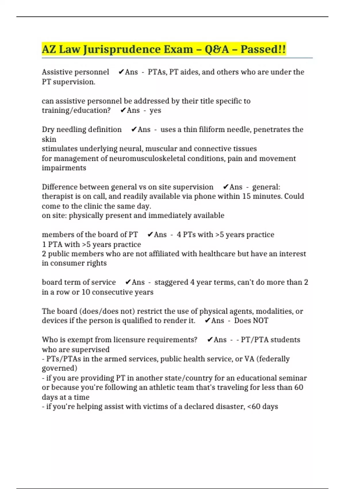 Who is exempt from licensure requirements? ✔️Ans - - PT/PTA students