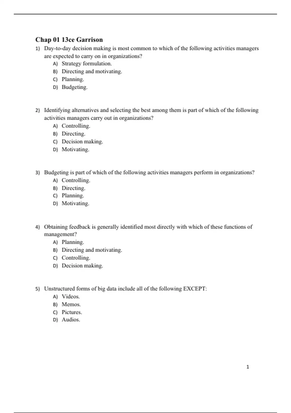 3) Budgeting is part of which of the following activities managers perform in organizations?