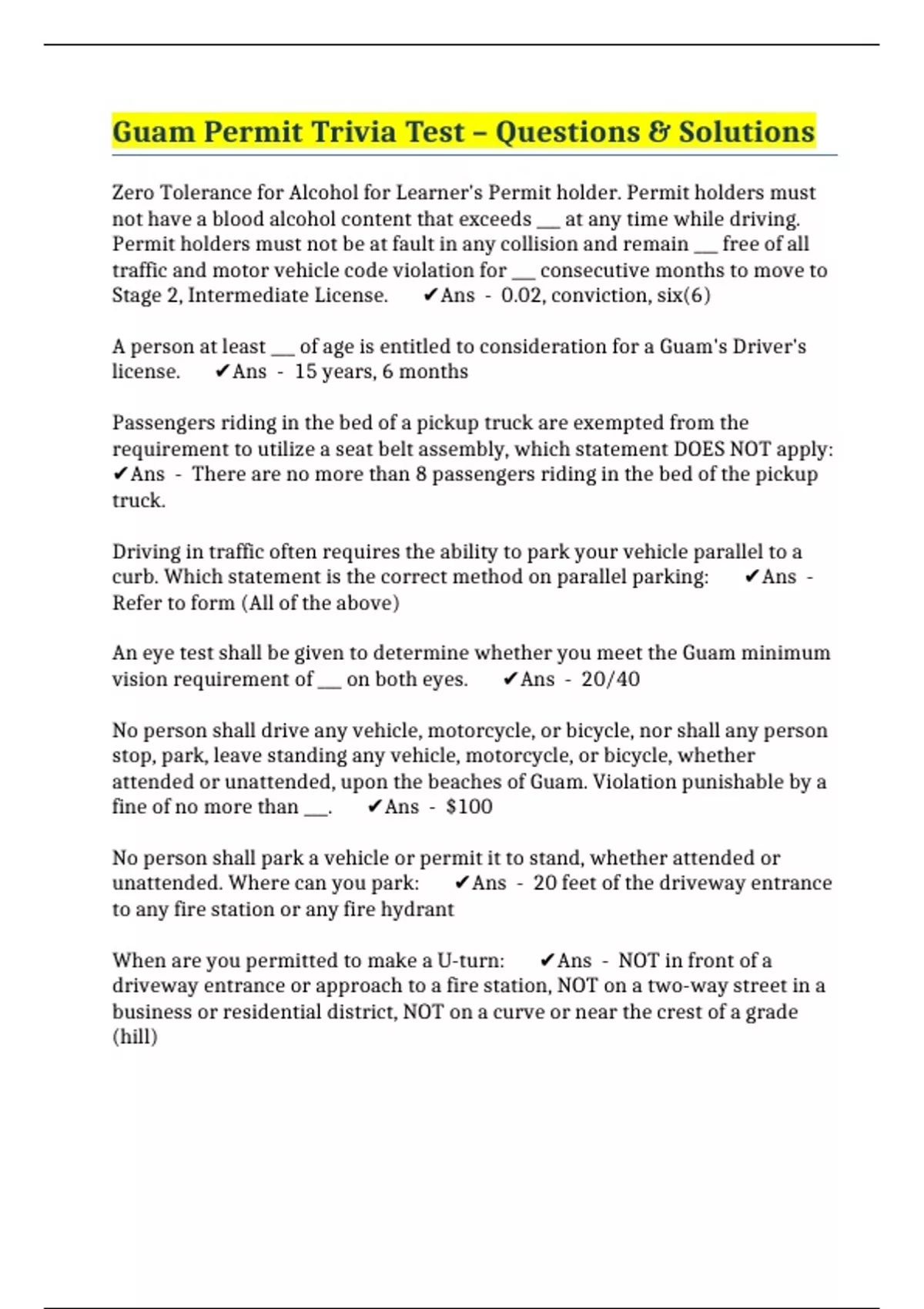 curb. Which statement is the correct method on parallel parking: ✔️Ans -