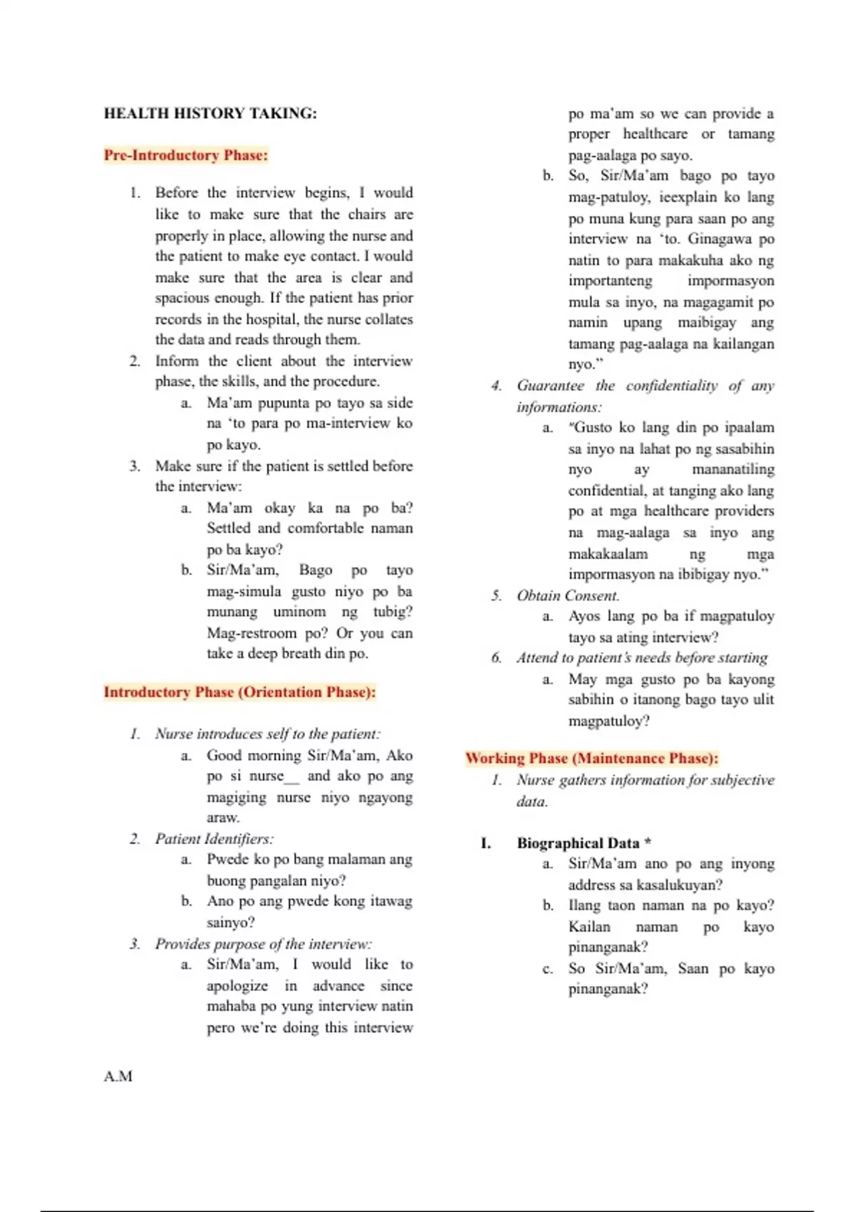 HEALTH HISTORY TAKING: po ma’am so we can provide a