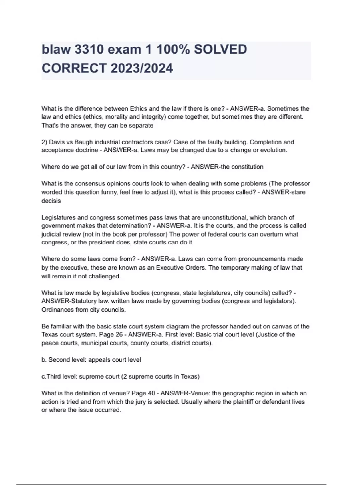 blaw 3310 exam 1 100% SOLVED CORRECT 2023/2024