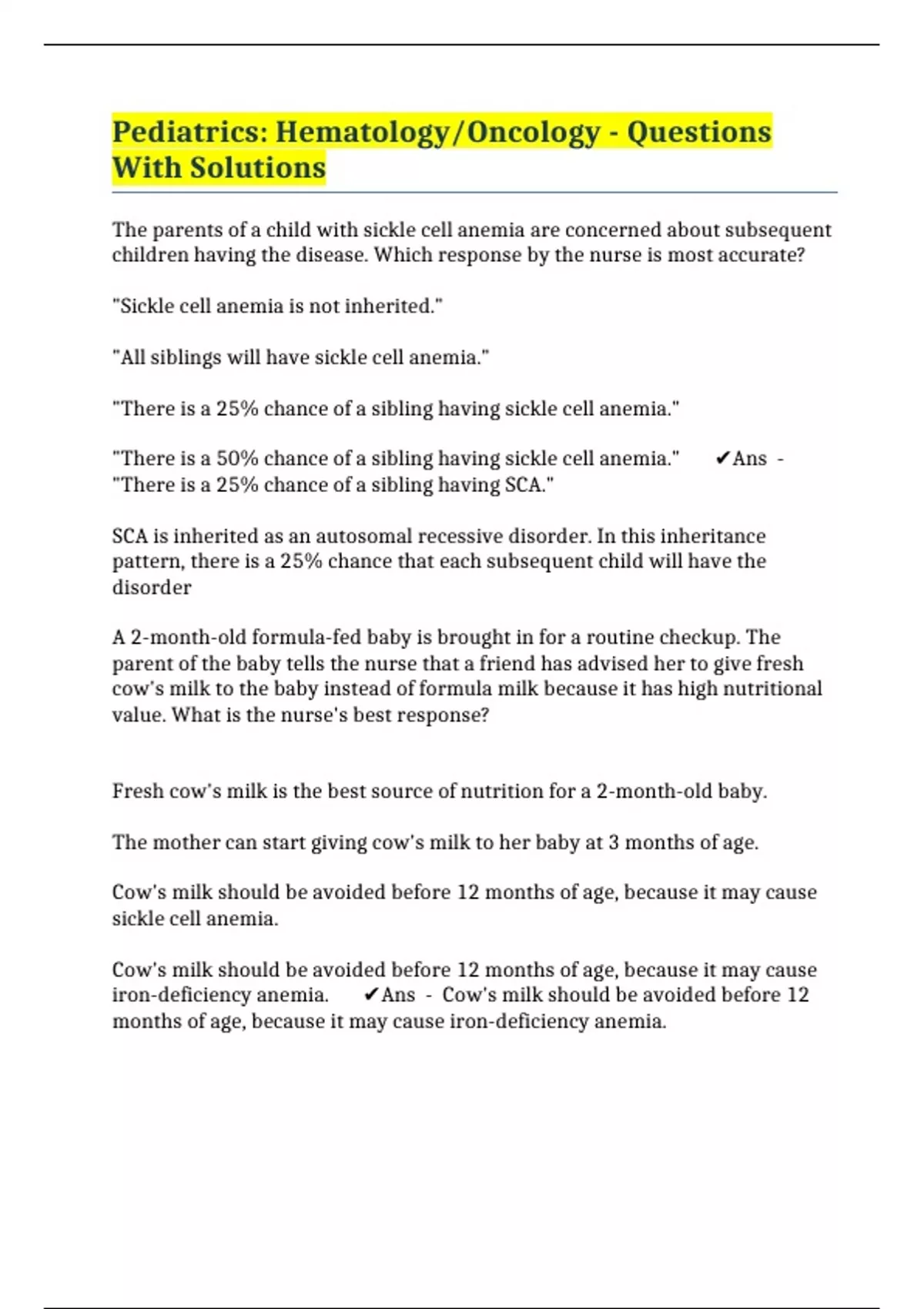 Pediatrics: Hematology/Oncology - Questions With Solutions