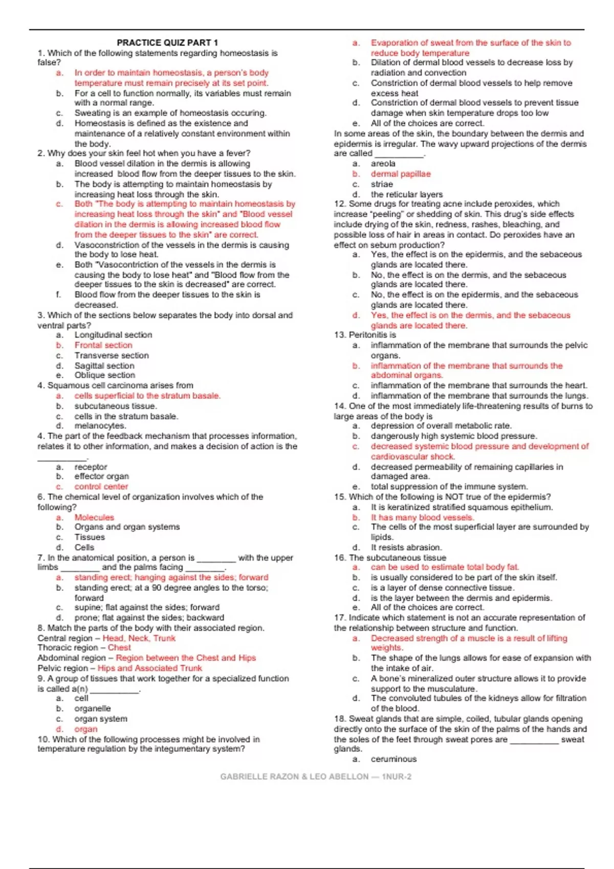 PRACTICE QUIZ PART 1 a. Evaporation of sweat from the surface of the skin to