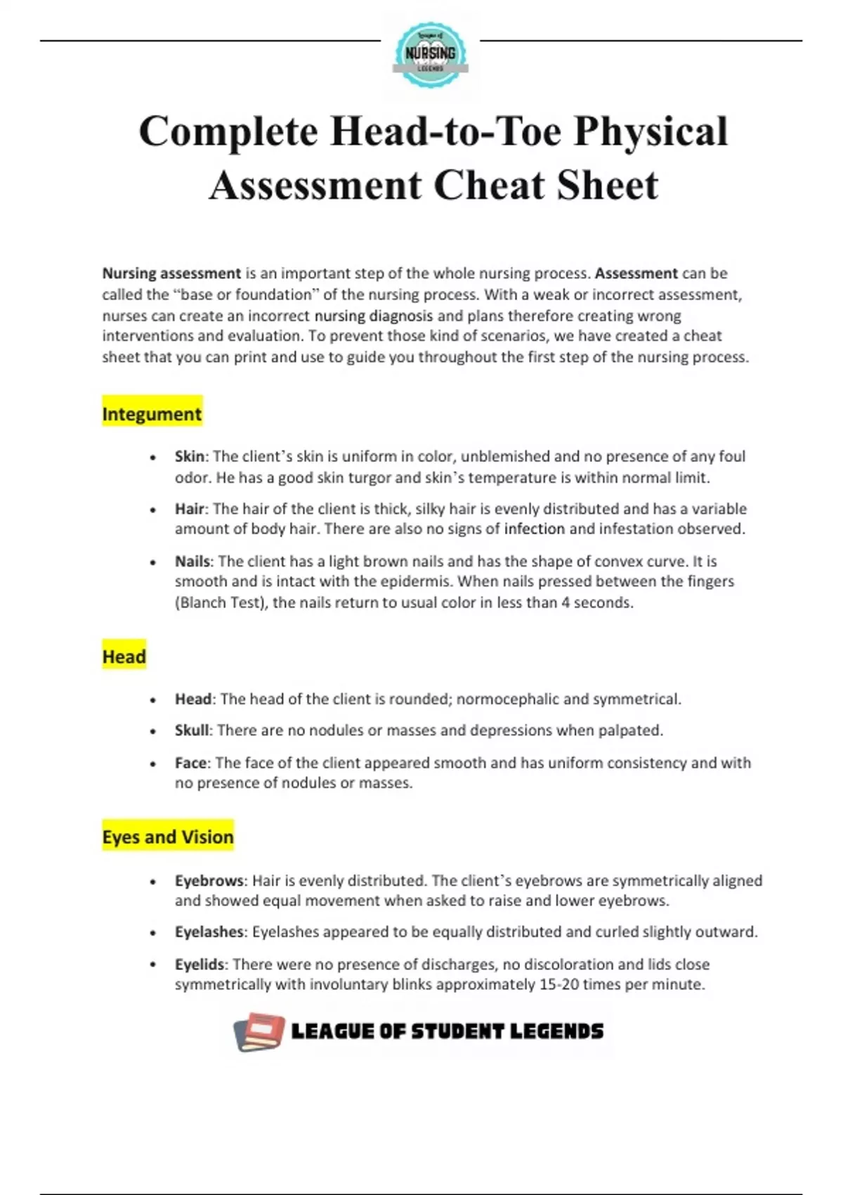 Complete Head to Toe Assessment