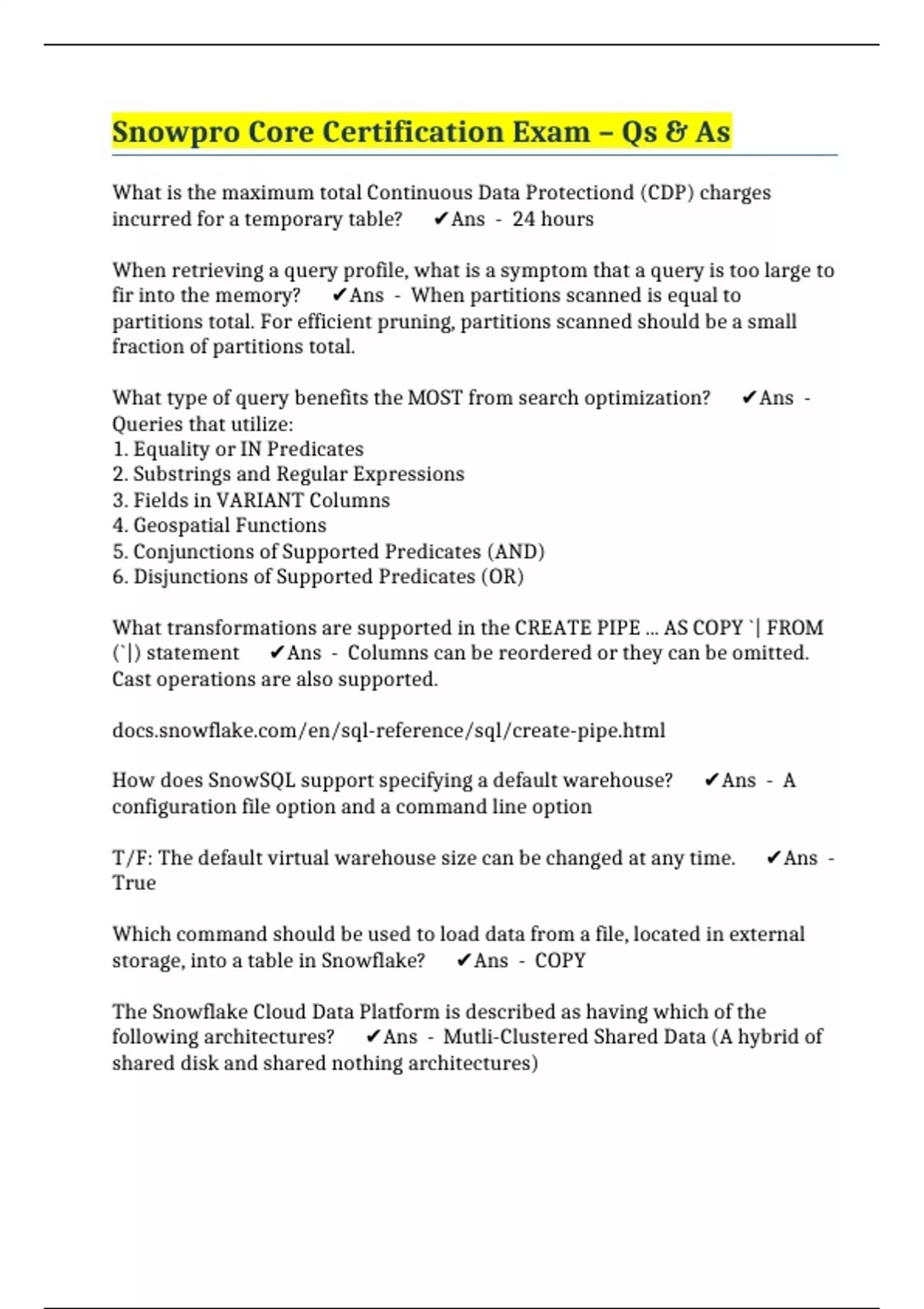 List three invalid Snowflake data types ✔️Ans - BLOB, CLOB, JSON. JSON is