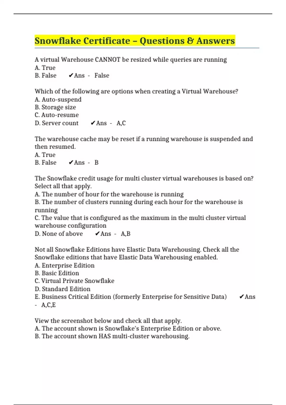D. The account shown is Snowflake's Standard Edition ✔️Ans - A,B