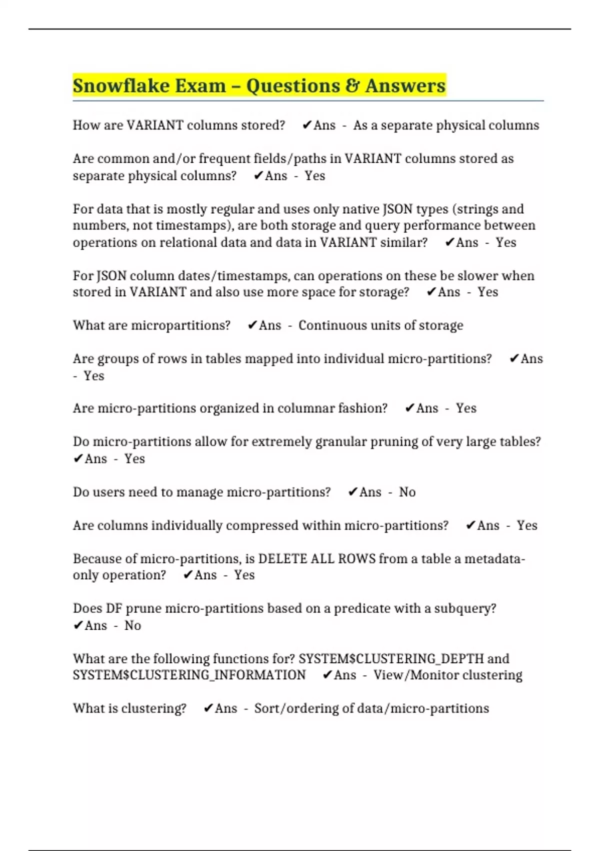 What is clustering? ✔️Ans - Sort/ordering of data/micro-partitions