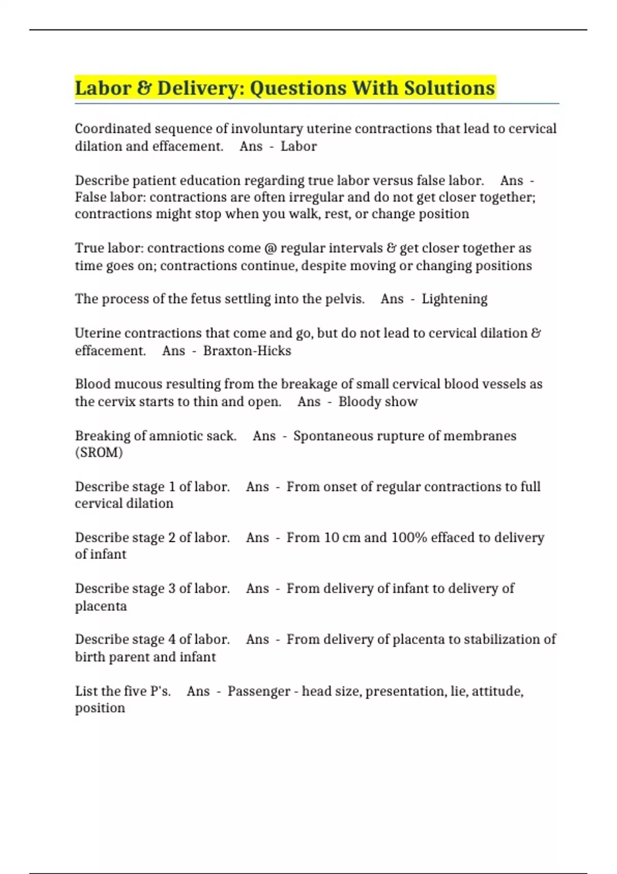Describe stage 2 of labor. Ans - From 10 cm and 100% effaced to delivery