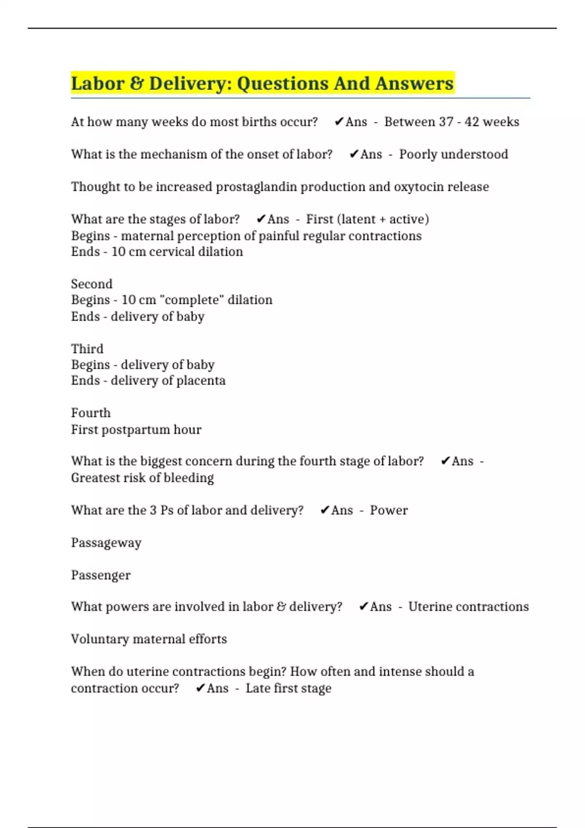 What powers are involved in labor & delivery? ✔️Ans - Uterine contractions